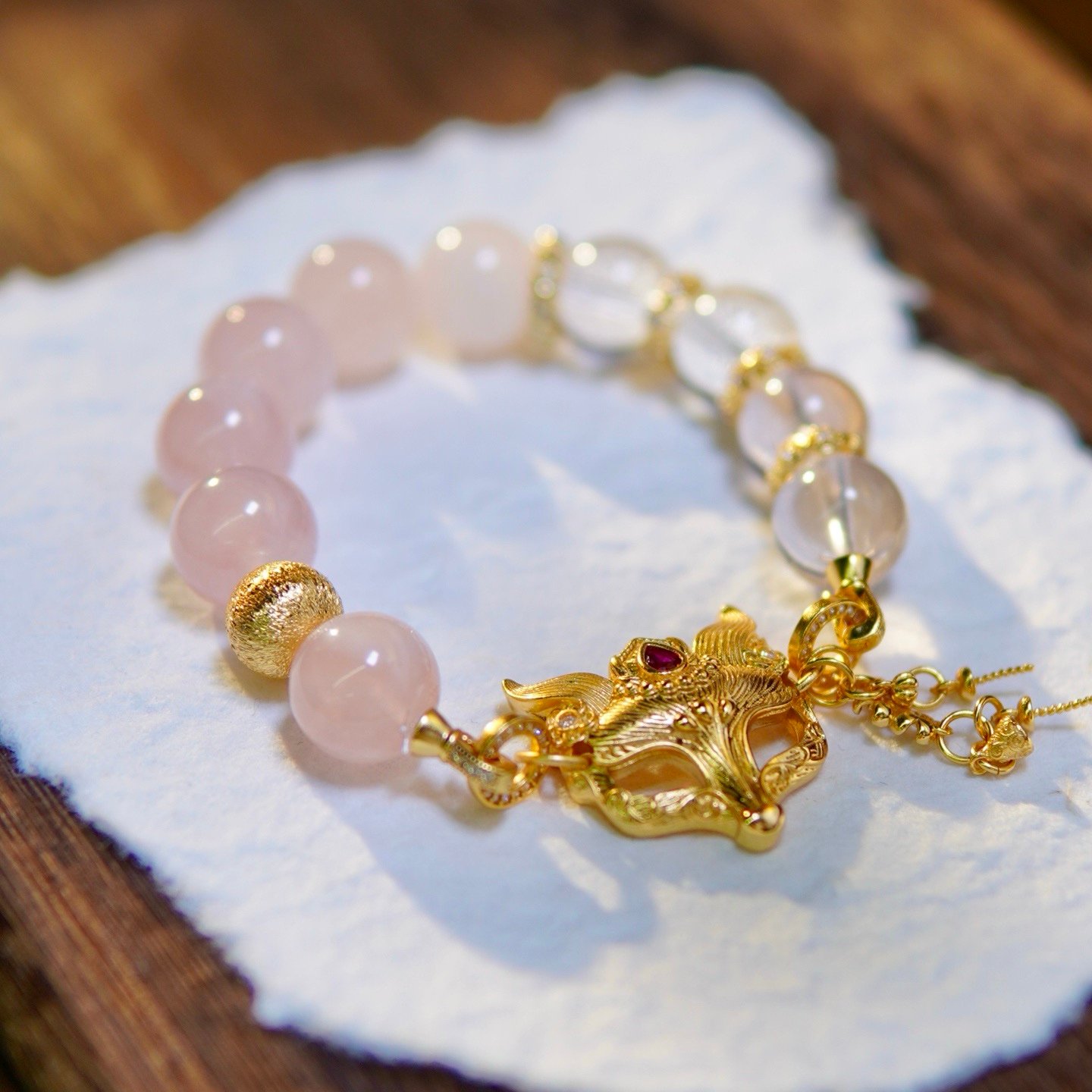 Invite love, clarity, and irresistible charm into your life with the “Golden Fox Harmony” bracelet. This exquisite 12mm piece is a symphony of soft energy and golden blessings, designed for the modern woman who radiates grace.