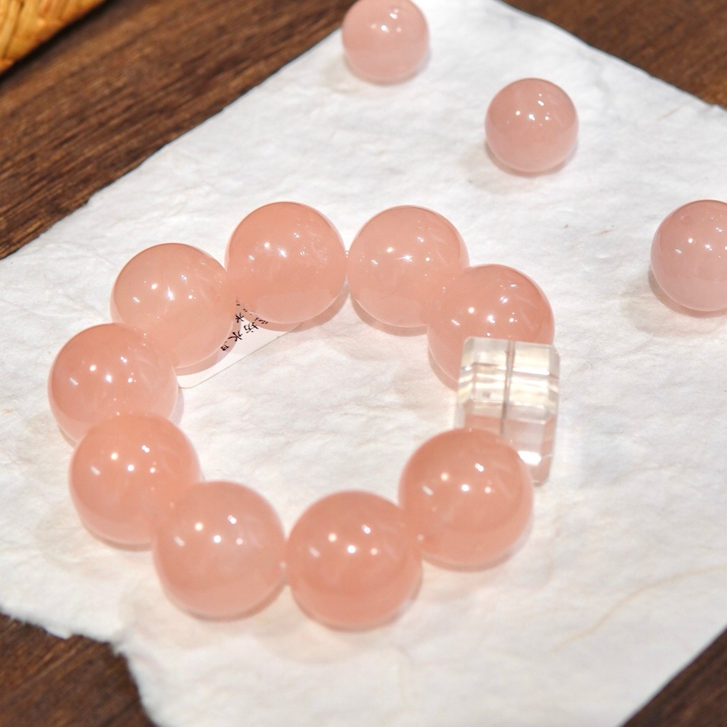 The Sun-Kissed Heart: 20mm Grapefruit Rose Quartz “Vitality & Love” Bracelet