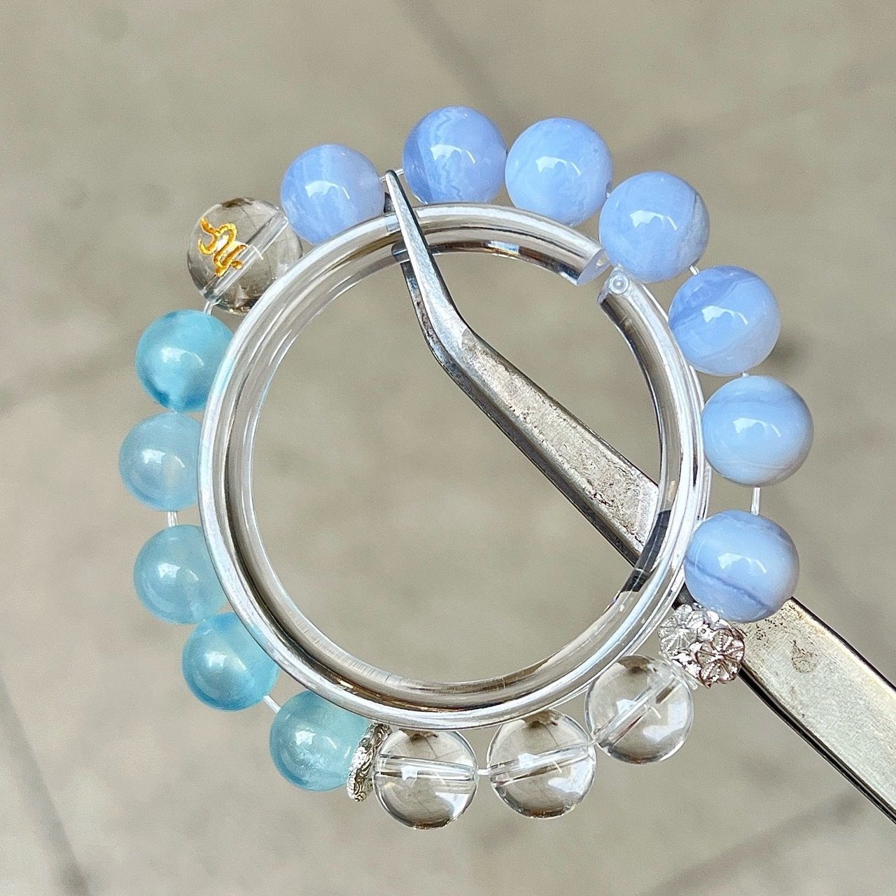 Throat Chakra Healing Bracelet – Aquamarine, Blue Lace Agate & Clear Quartz