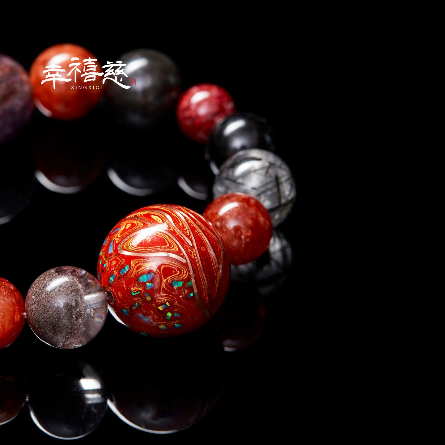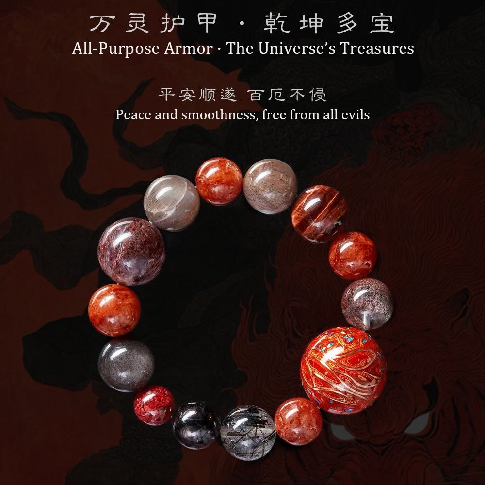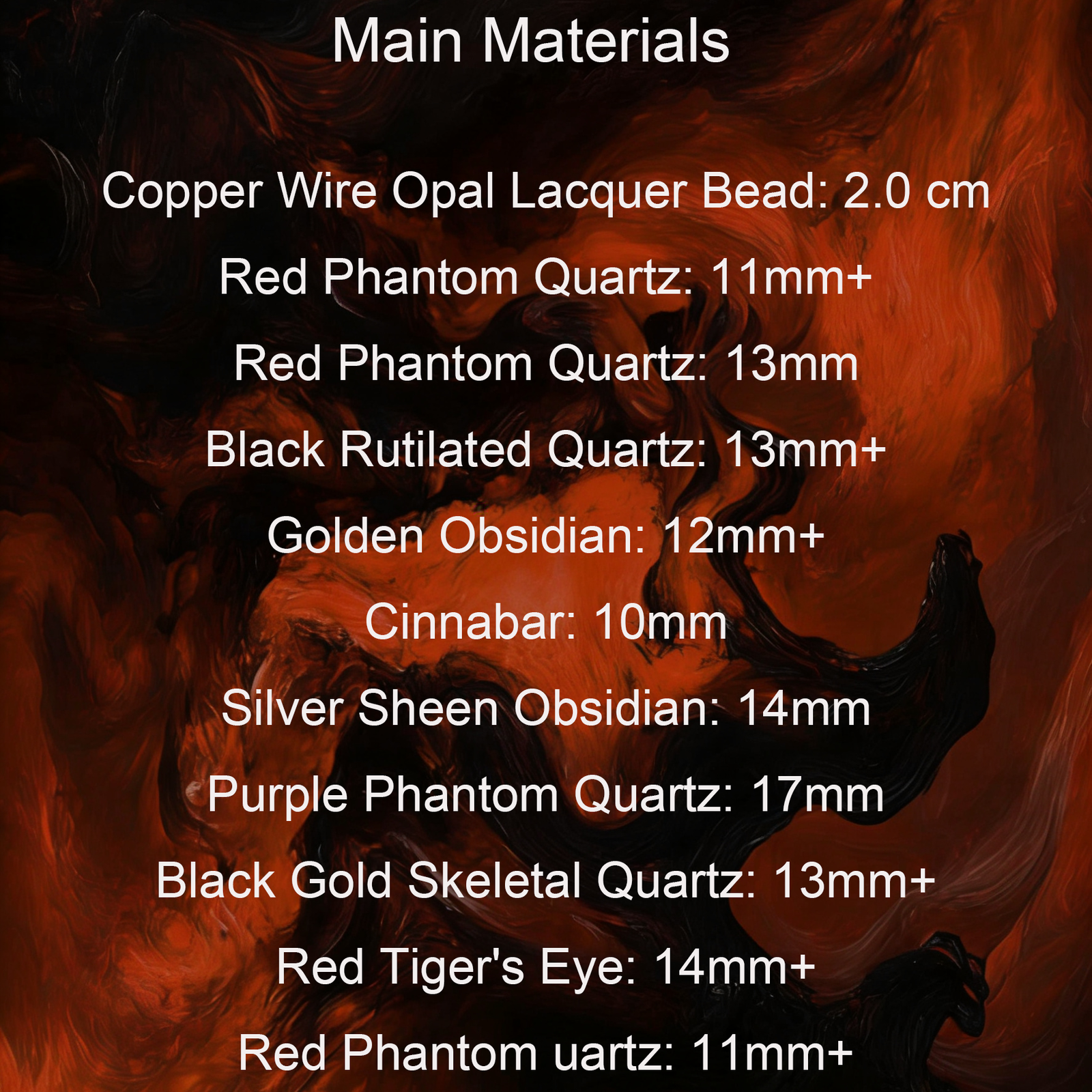 – Wealth Attraction: Gold Obsidian, Red Amphibole Quartz, Red Phantom Quartz, Red Tiger Eye