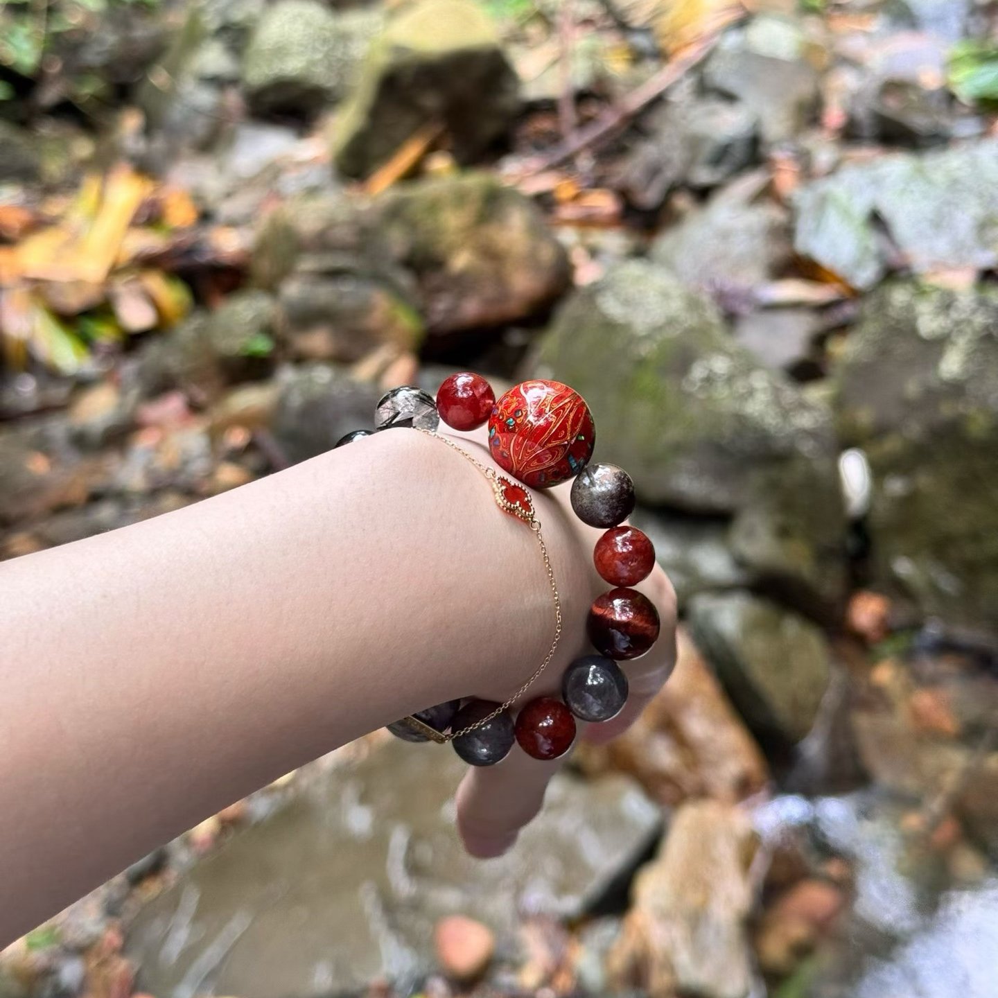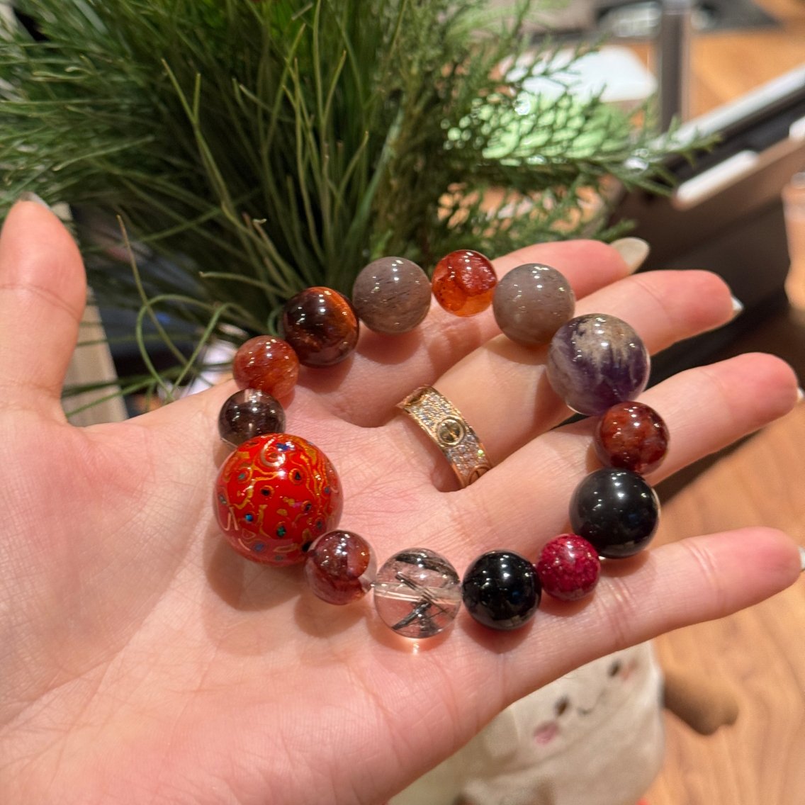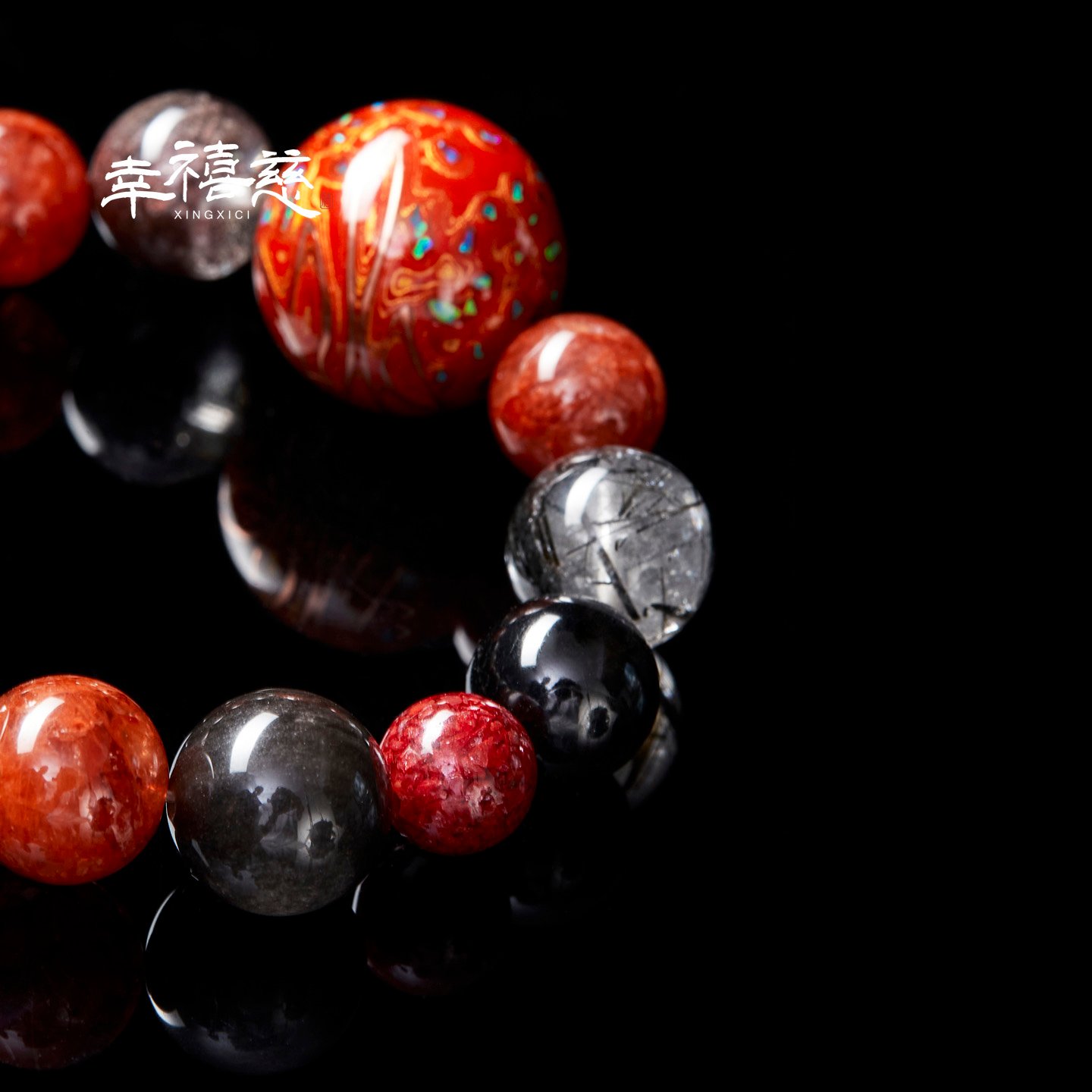 – Wealth Attraction: Gold Obsidian, Red Amphibole Quartz, Red Phantom Quartz, Red Tiger Eye