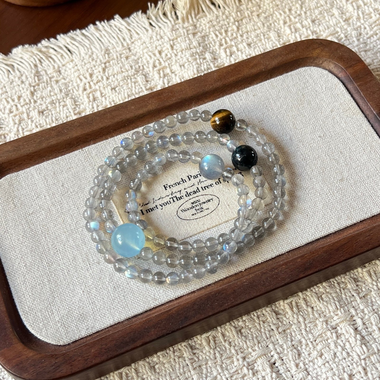Capture the essence of a summer midnight on your wrist. Featuring 5mm ultra-clear beads, this three-wrap design is more than just jewelry—it’s a wearable “mood” that blends a cool, ethereal aesthetic with powerful emotional healing.