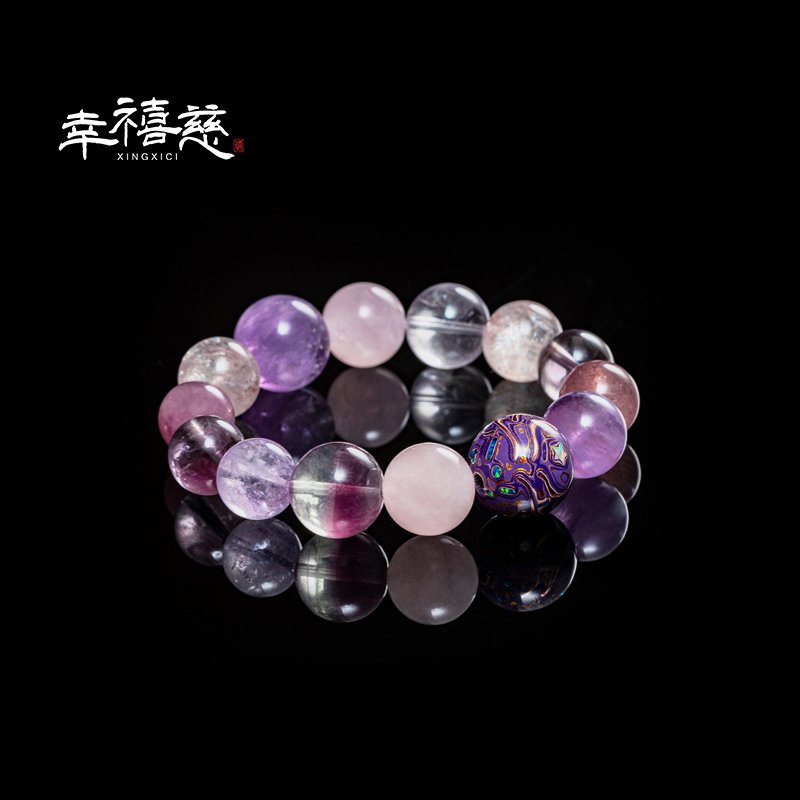 Intangible Cultural Heritage Colored Cloud Sand Lacquer & Natural Crystal Bracelet.