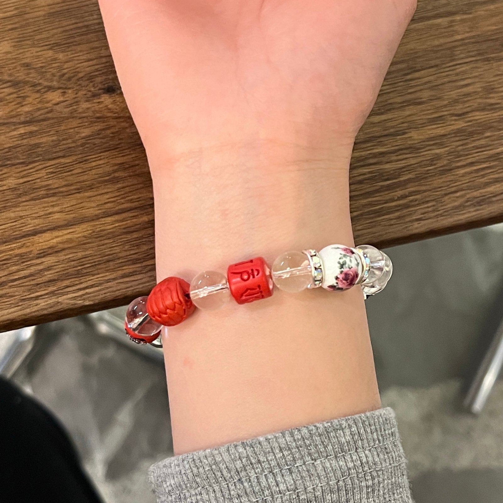 🔵 Blue & White Porcelain (The Art): Adorned with hand-painted ceramic beads, adding a touch of classic Oriental elegance and balancing the visual energy of the red and white stones.