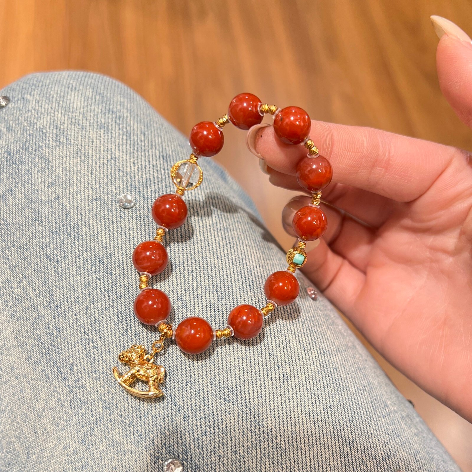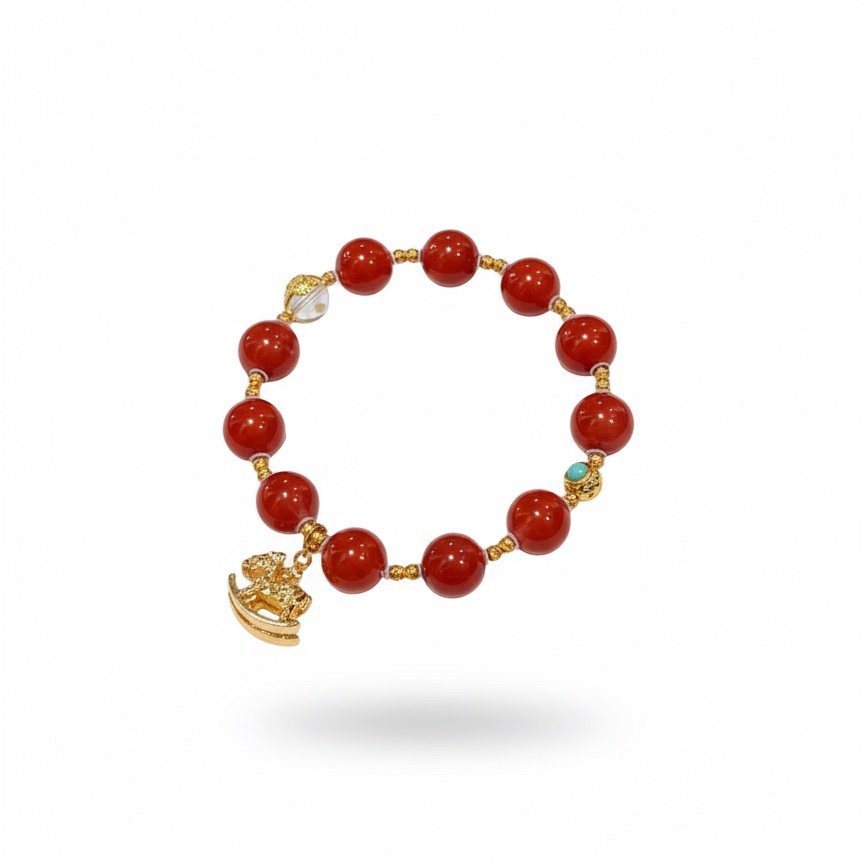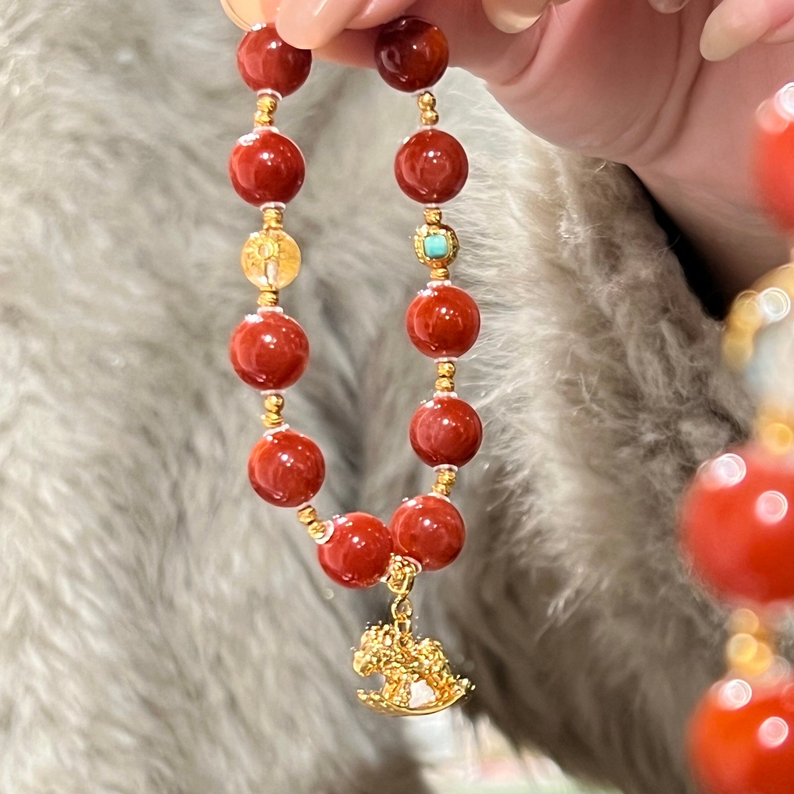 “Crimson Steed Blessing” : Southern Red Agate Tai Sui Guardian Bracelet (10mm)