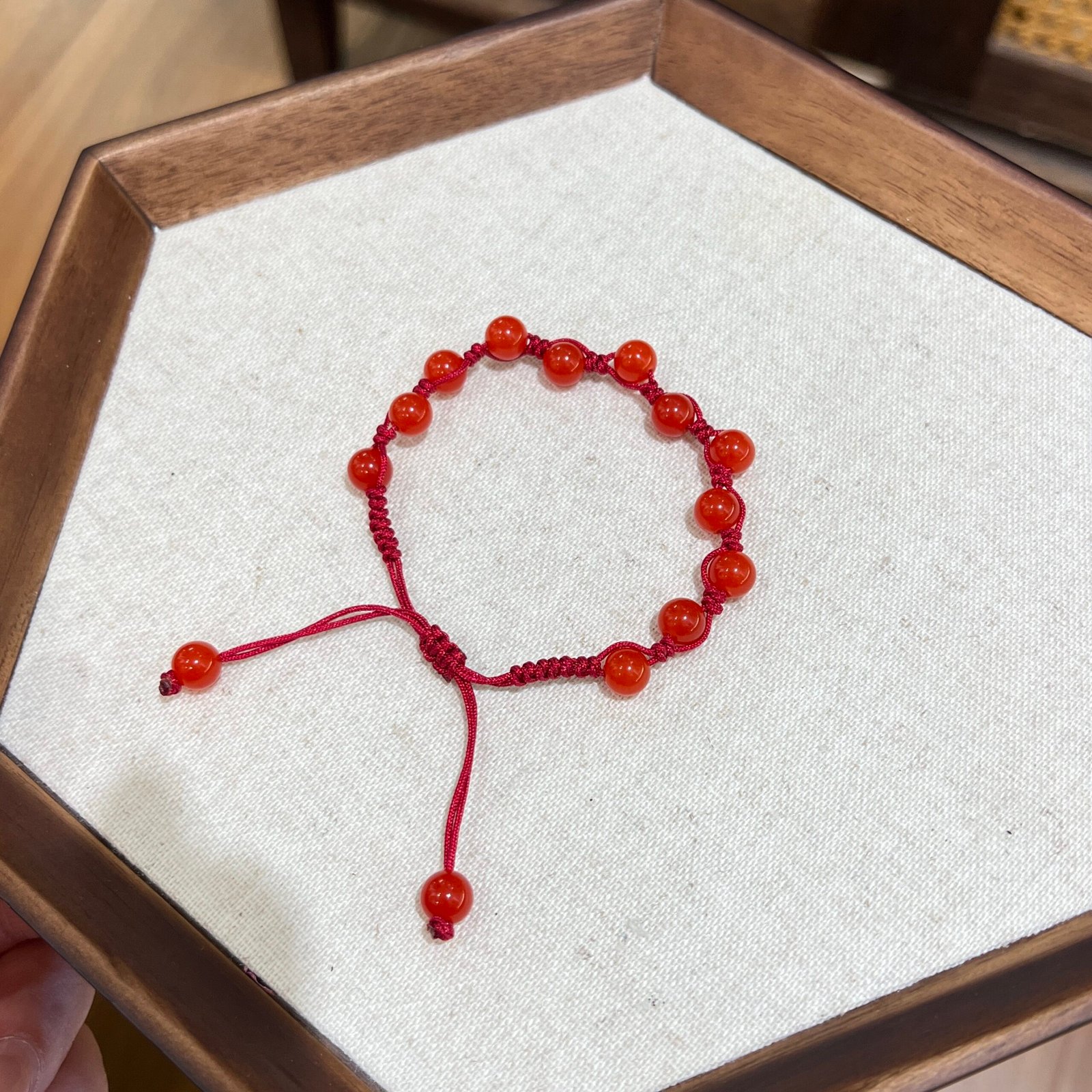 The “Knot of Fortune”: 6mm Red Agate Vajra Knot Bracelet