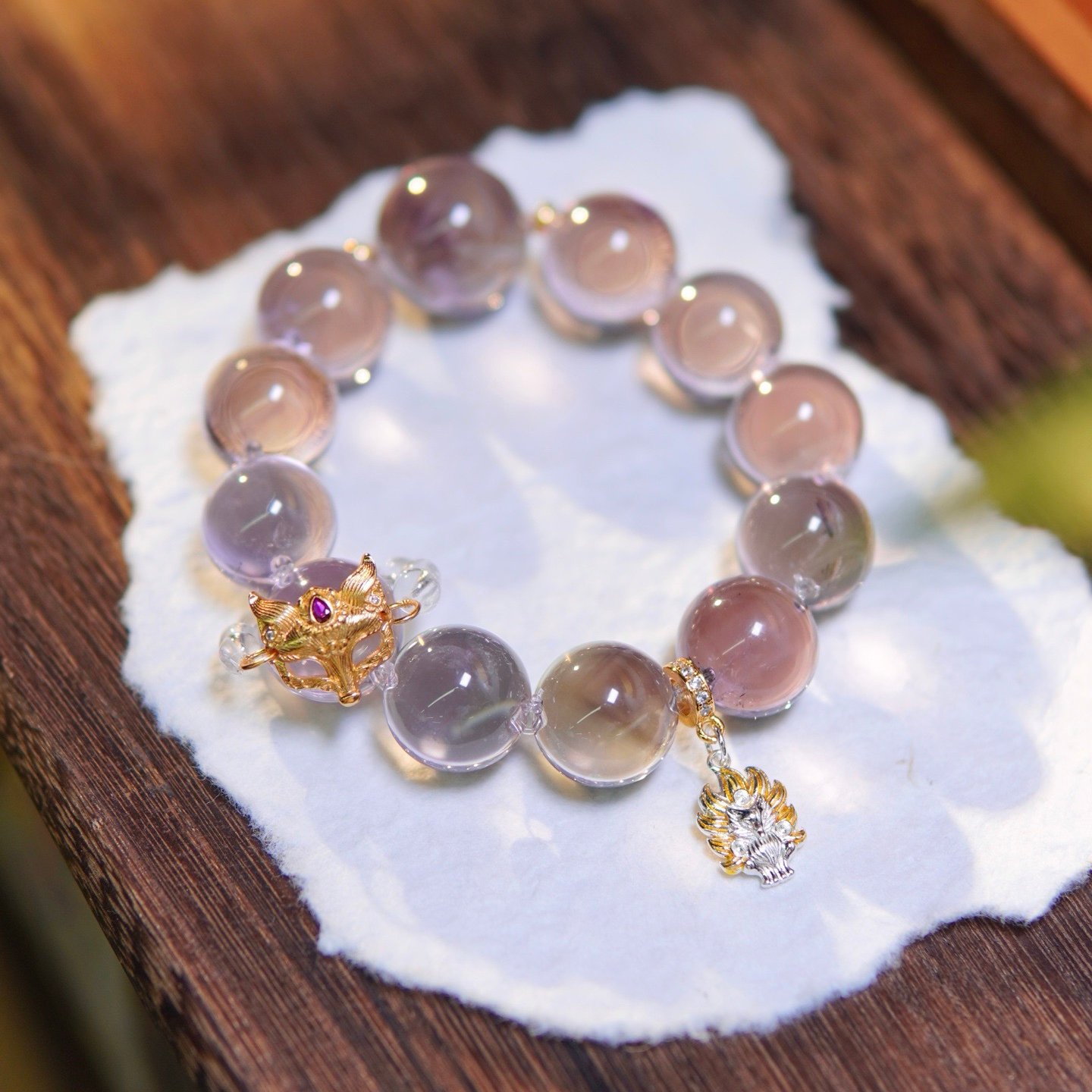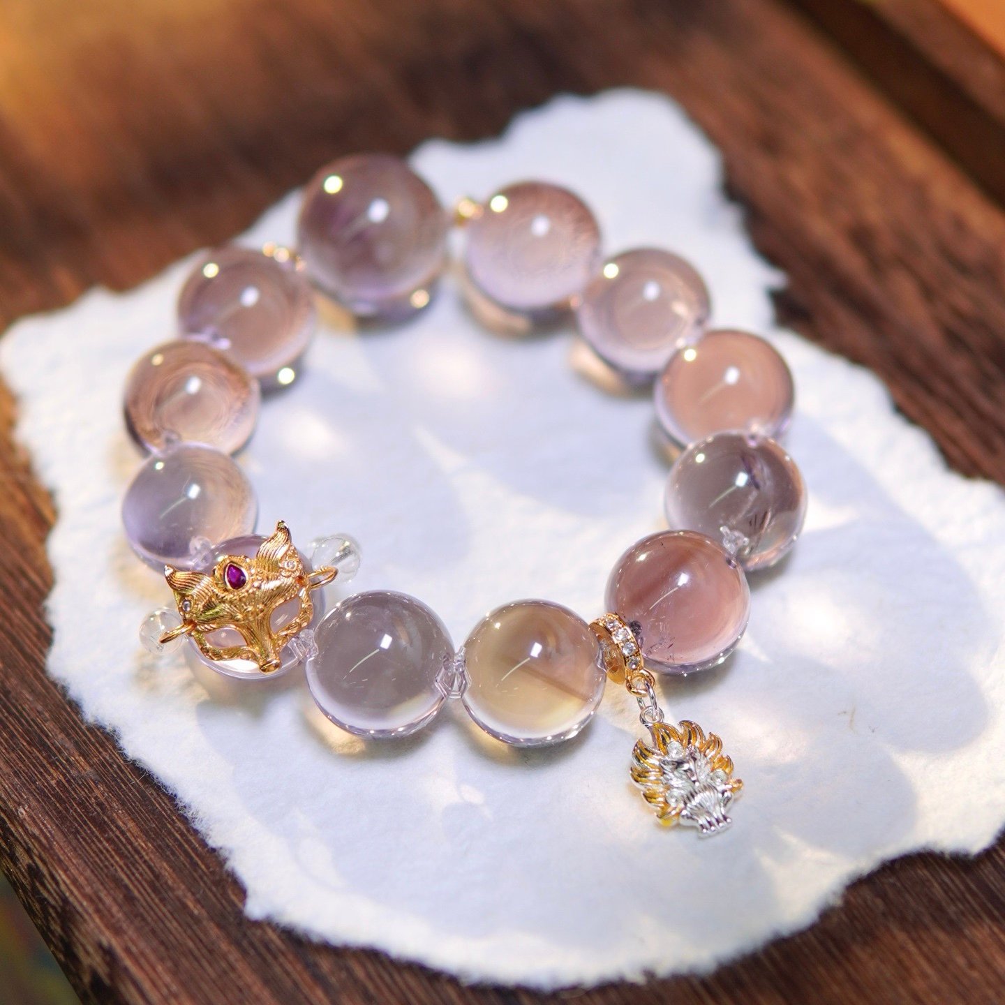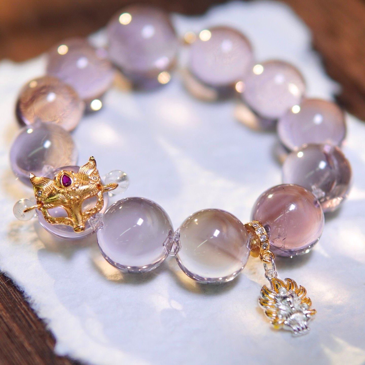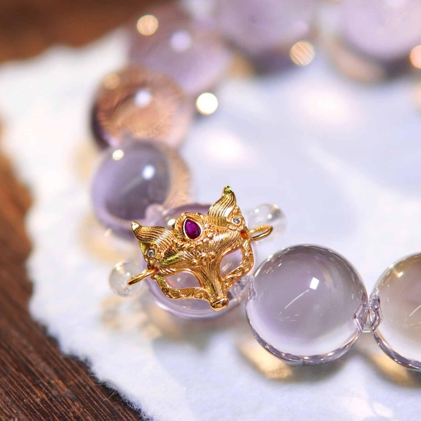 “The Nine-Tailed Muse”: Amethyst & Golden Fox Triple Blessing Bracelet