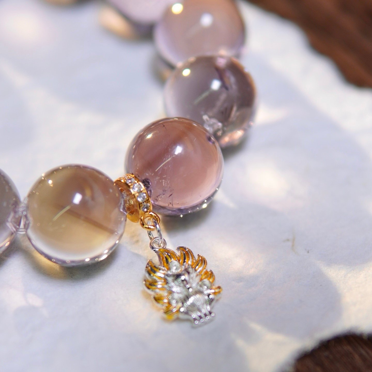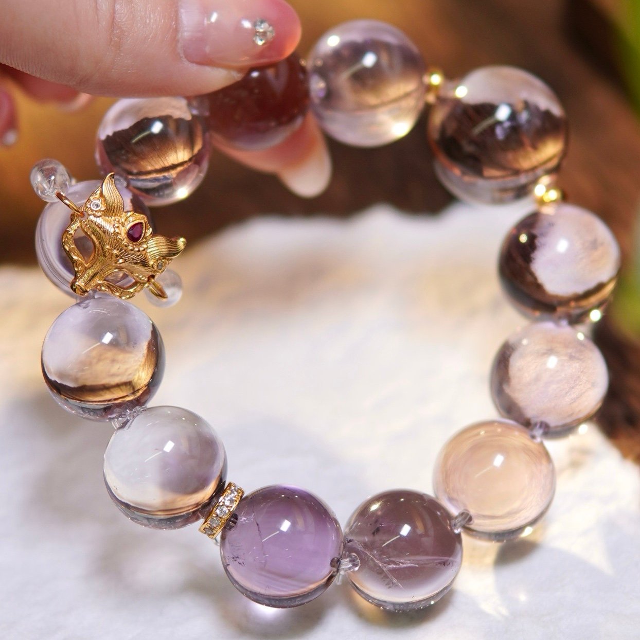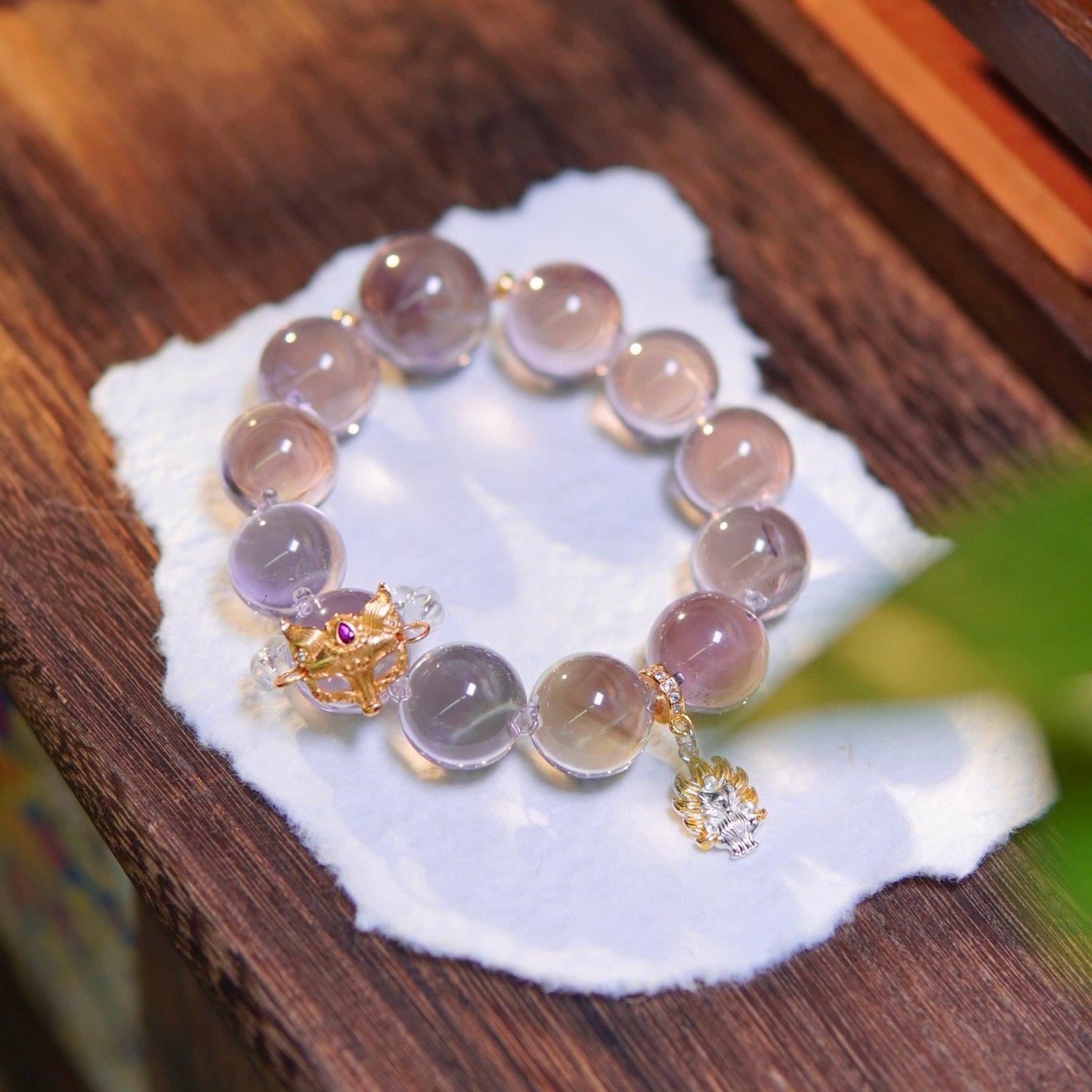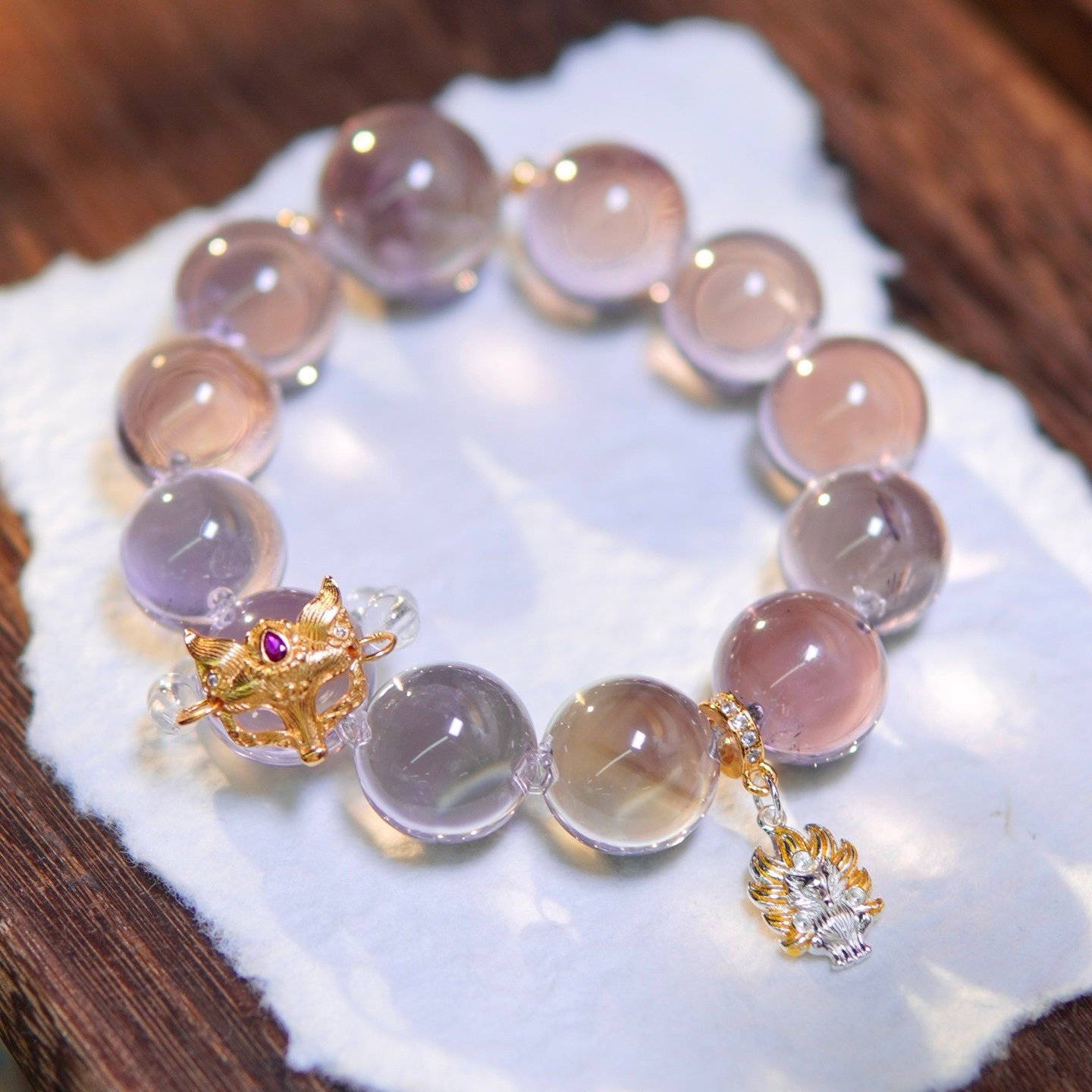 “The Nine-Tailed Muse”: Amethyst & Golden Fox Triple Blessing Bracelet