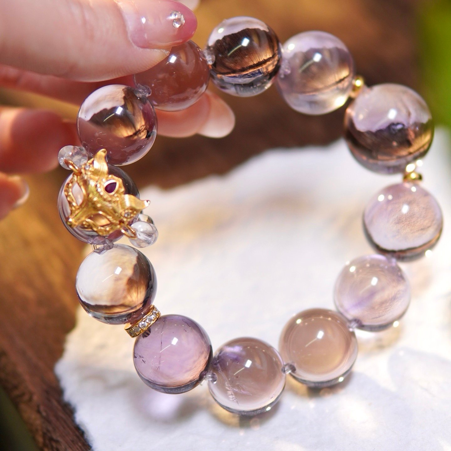 • Amethyst (20mm & 16-17mm) – The Awakener of Wisdom: As the “Stone of Spirituality,” Amethyst is your guide to unlocked wisdom and a stable aura (开智慧、稳气场). Its powerful energy helps clarify thoughts, calm emotions, and ground your presence, allowing you to navigate life with profound insight.