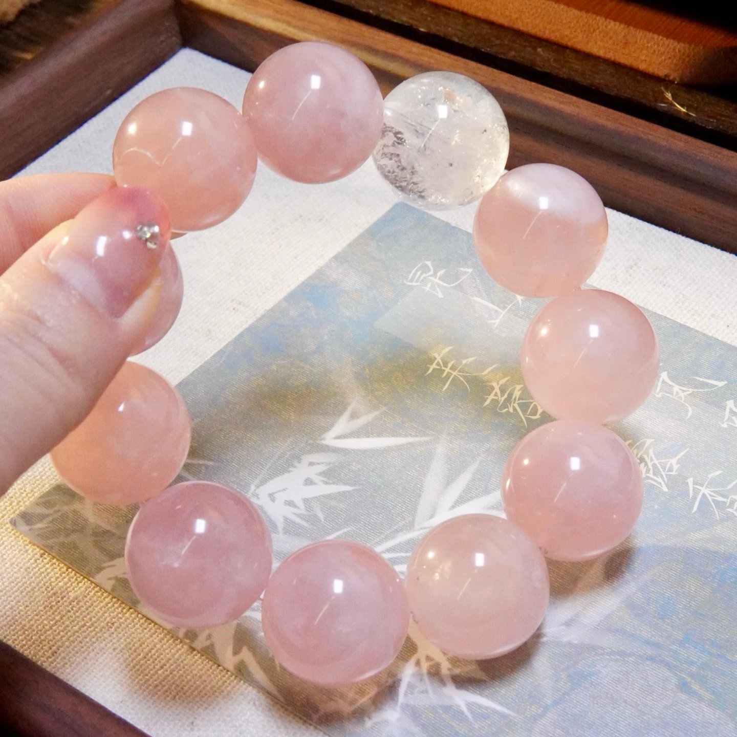 Clear Quartz (The Anchor of Clarity): While the world may feel chaotic, Clear Quartz keeps you grounded. As the “Master Healer,” it stabilizes your emotions and purifies your mind (稳情绪), creating a bubble of serenity that allows you to remain calm and clear-headed.